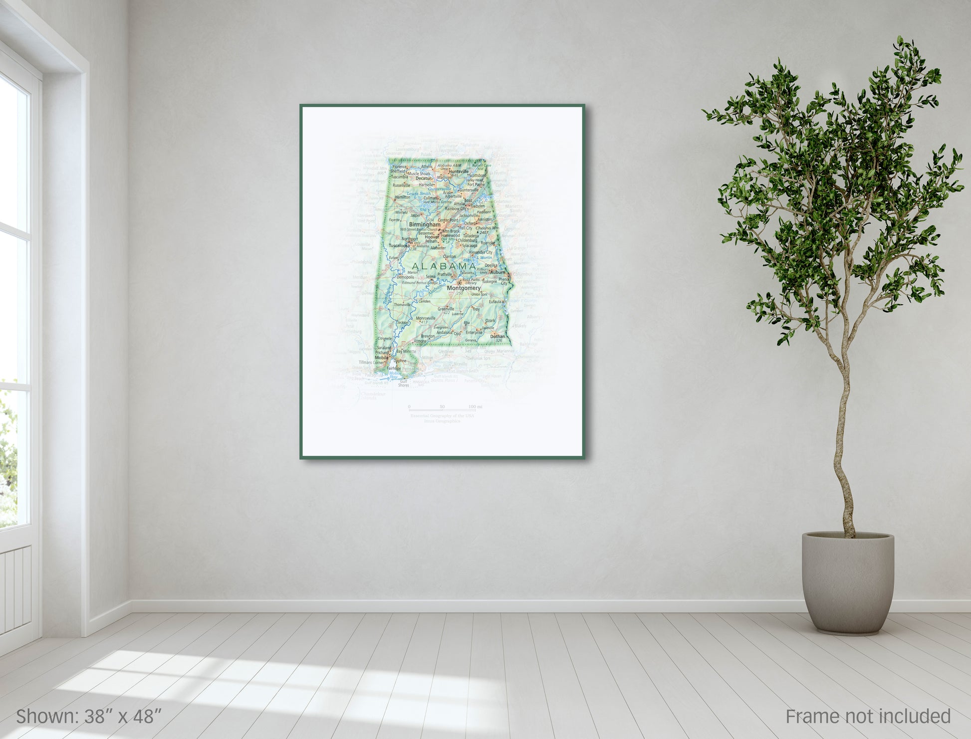 A uniquely-informative geographic reference that doubles as eye-pleasing art, Portrait of Alabama is archival in quality, and fits standard pre-made picture frame sizes.