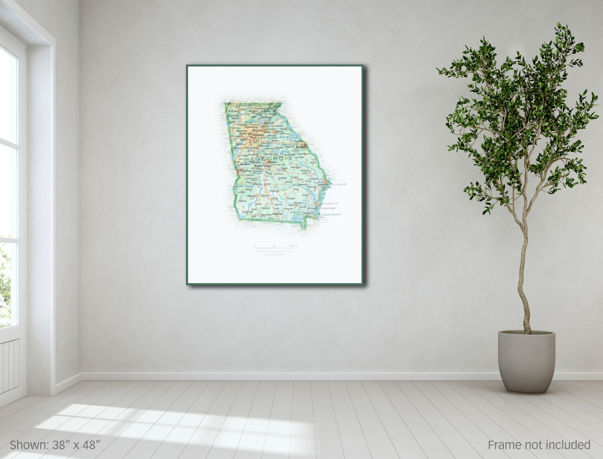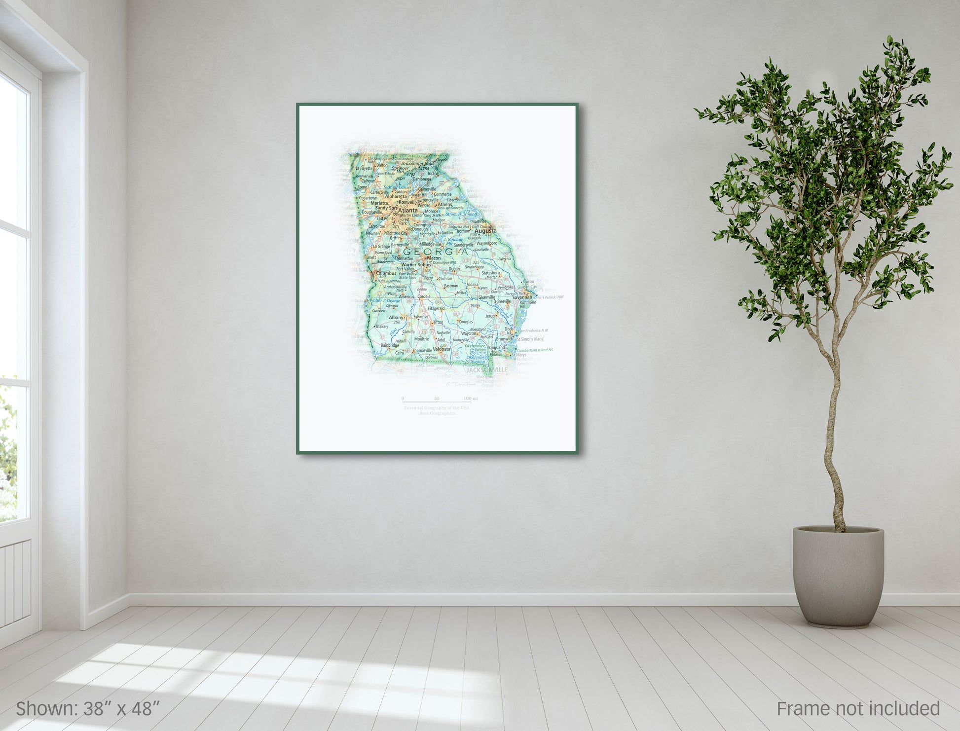A uniquely-illustrative geographic reference that doubles as eye-pleasing art, Portrait of Georgia is archival in quality, and fits standard pre-made picture frame sizes.