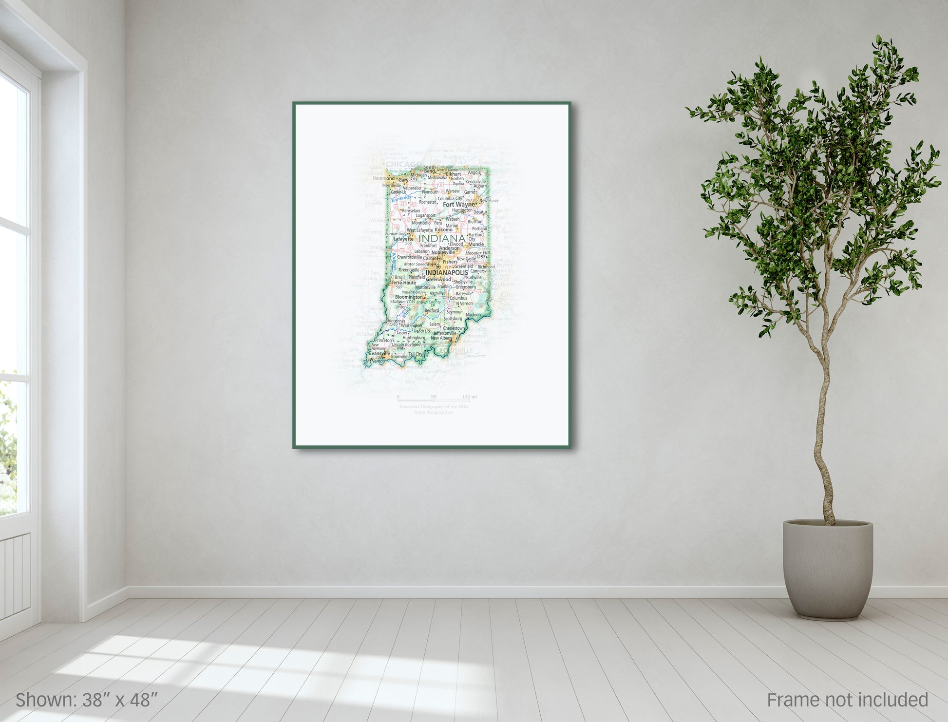 A uniquely-illustrative geographic reference that doubles as eye-pleasing art, Portrait of Indiana is archival in quality, and fits standard pre-made picture frame sizes.
