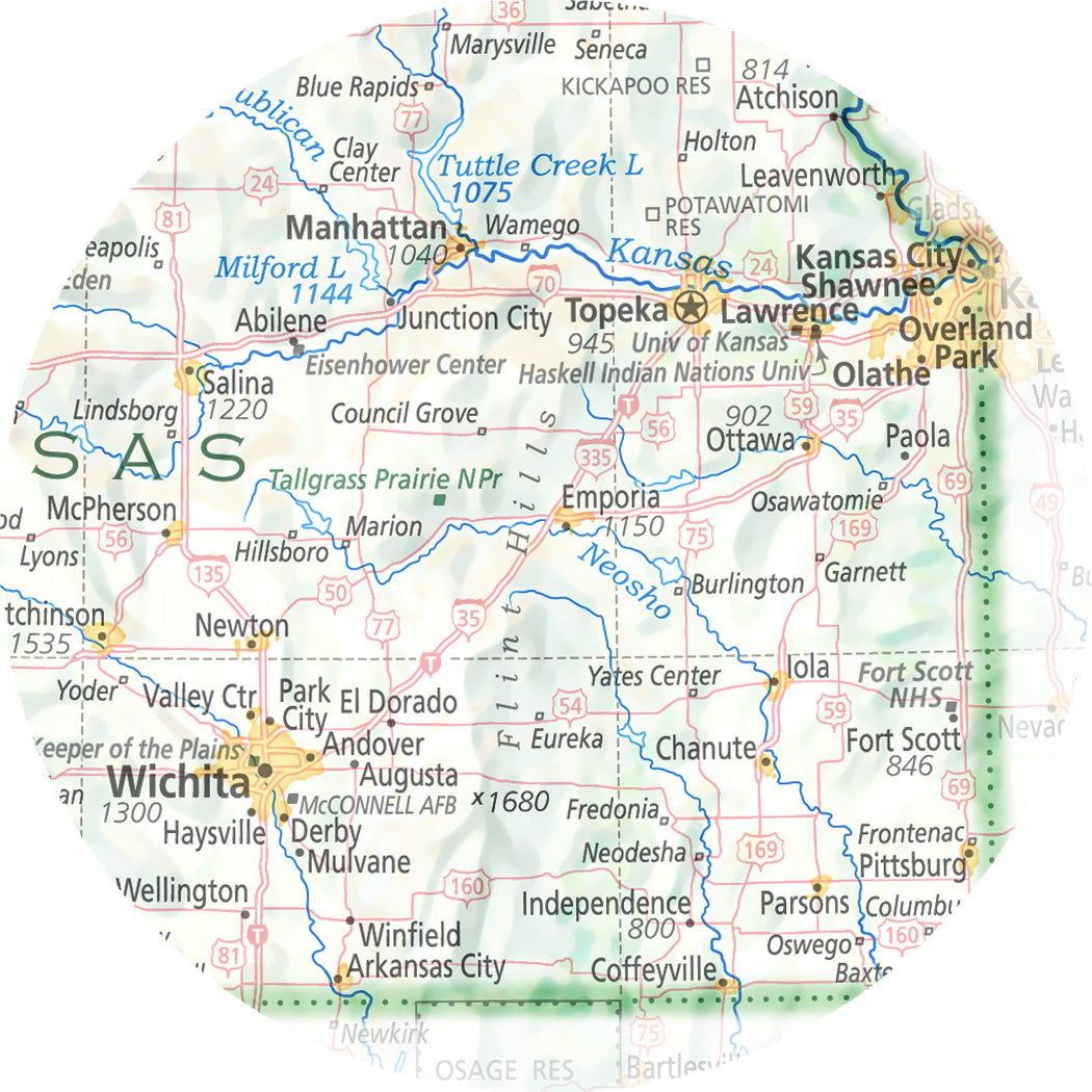 A uniquely-illustrative geographic reference that doubles as eye-pleasing art, Portrait of Kansas is archival in quality, and fits standard pre-made picture frame sizes.
