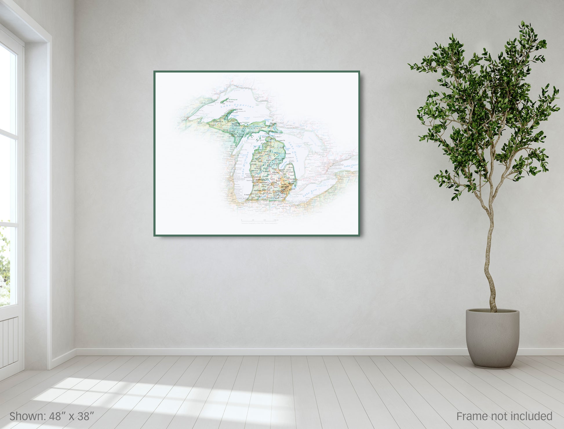 A uniquely-illustrative geographic reference that doubles as eye-pleasing art, Portrait of Michigan is archival in quality, and fits standard pre-made picture frame sizes.