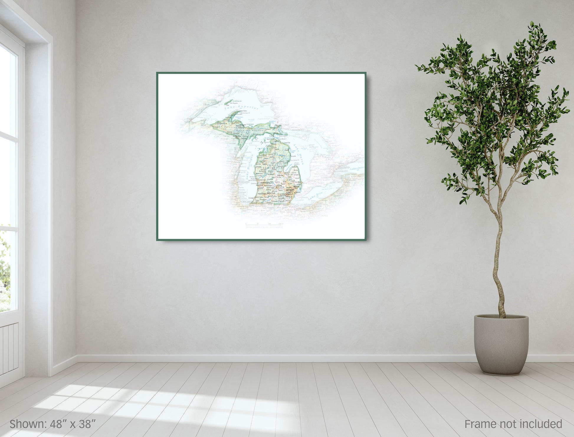 For close-up settings, such as hallways and scrapbooks, I recommend small sizes. For rooms where you'll view from a distance, I think you'd appreciate a larger size that will illuminate Michigan’s glacial landscapes rising out of the waters of the Great Lakes.