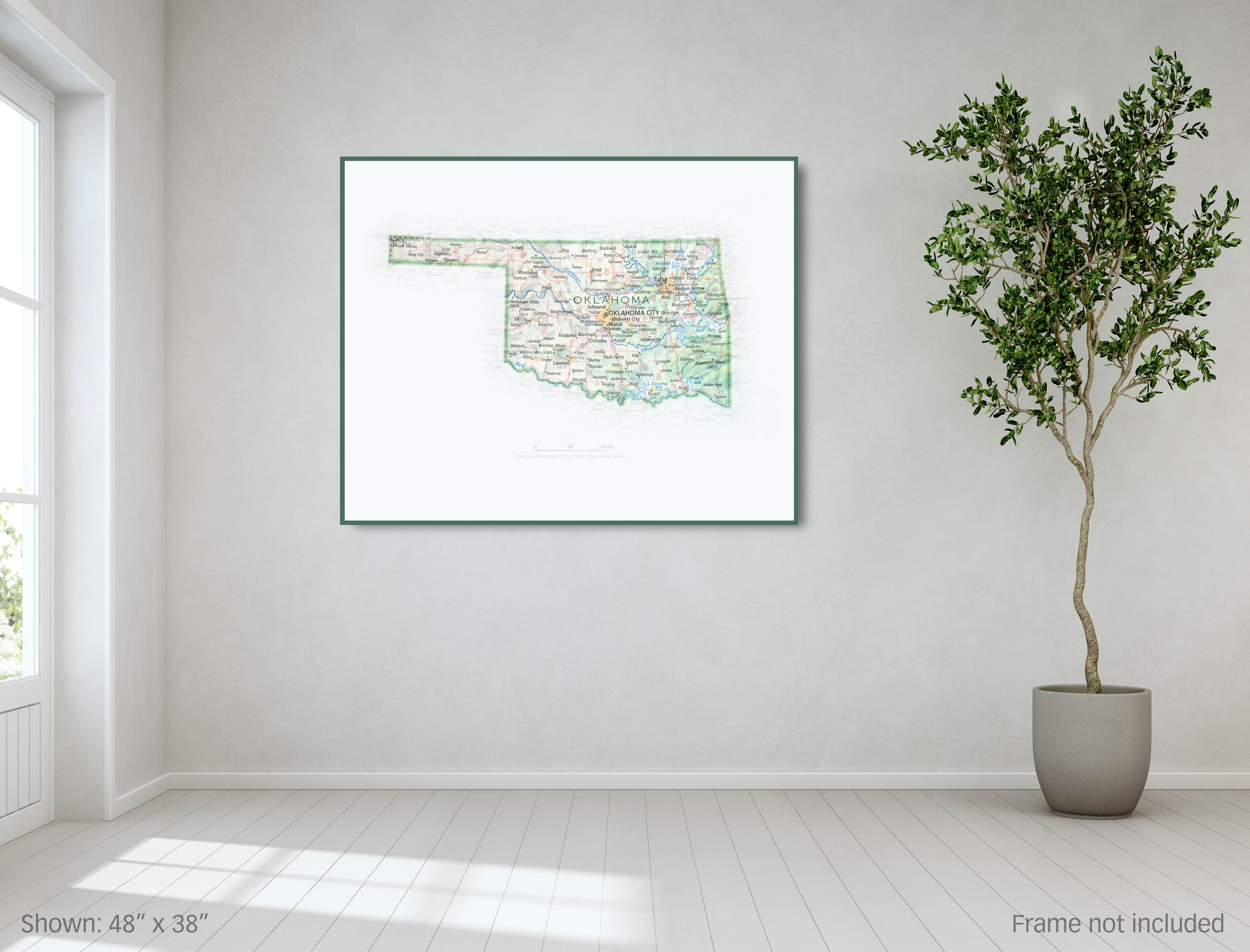 A uniquely-illustrative geographic reference that doubles as eye-pleasing art, Portrait of Oklahoma is archival in quality, and fits standard pre-made picture frame sizes.