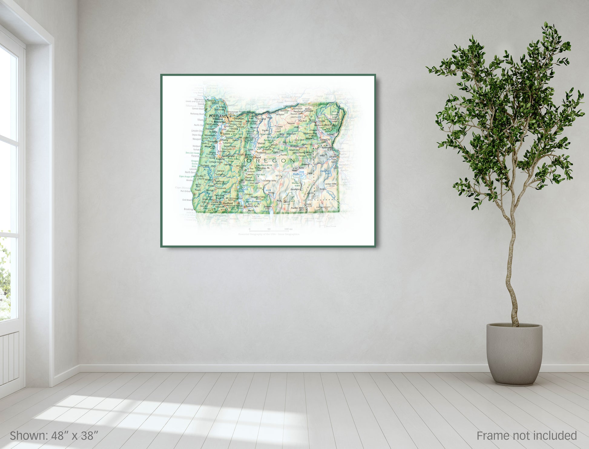 A uniquely-illustrative geographic reference that doubles as eye-pleasing art, Portrait of Oregon is archival in quality, and fits standard pre-made picture frame sizes.