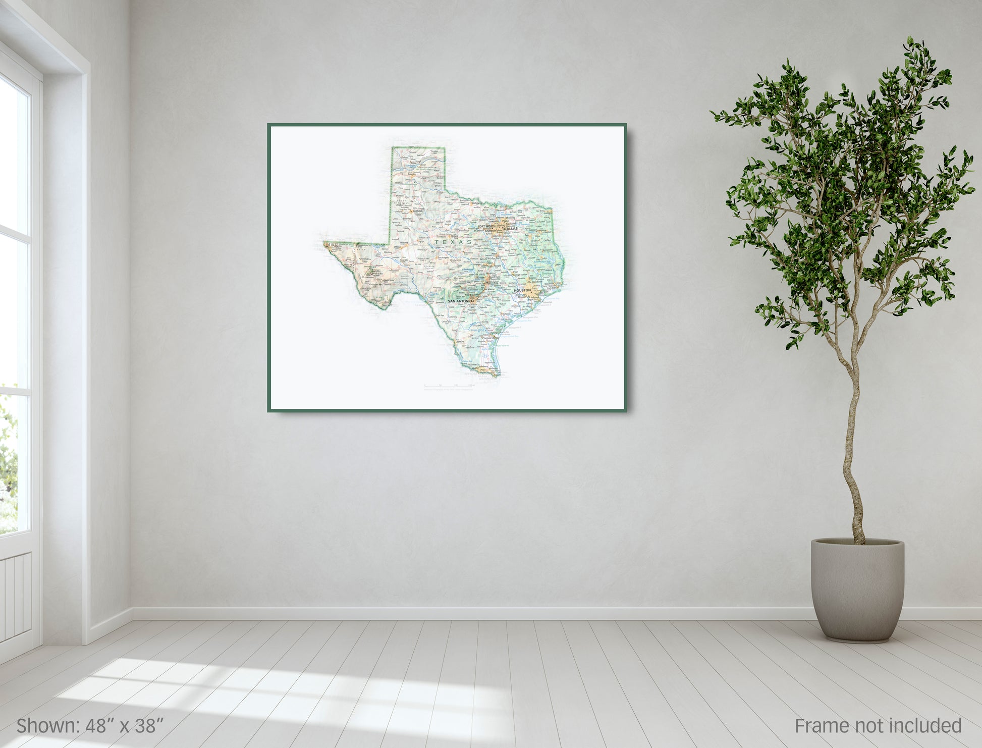 A uniquely-informative geographic reference that doubles as eye-pleasing art, Portrait of Texas is archival in quality, and fits standard pre-made picture frame sizes.